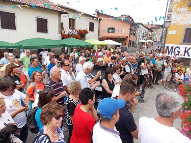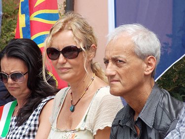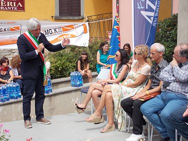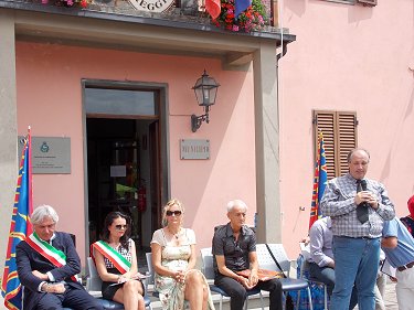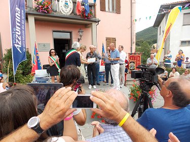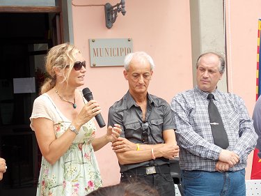 Sul palco delle autorità, Licia Colò è seduta a fianco di Leonardo Nardini, fratello di Giuseppe, e del rappresentante del Comune di Careggine, Lucia Rossi. |