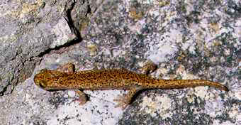 La salamandrina dagli occhiali (Salamandrina terdigitata) è molto simile alla Salamandra, ma è più piccola e, a differenza di altri urodeli, possiede solo quattro dita. La coda e le zampe sono rosse nella parte inferiore, mentre il ventre e la gola sono macchiettati di bianco e nero. Si tratta di una specie molto rara, che si trova solo in poche zone dell'Appennino italiano e sulle Apuane. Vive tra le foglie ed i muschi dei boschi in montagna ed in collina ed esce allo scoperto solo nelle giornate più umide e nei momenti della riproduzione. E' un animale di particolare interesse zoogeografico perché endemico dell'Italia; è fra l'altro simbolo della Unione Zoologica Italiana. |