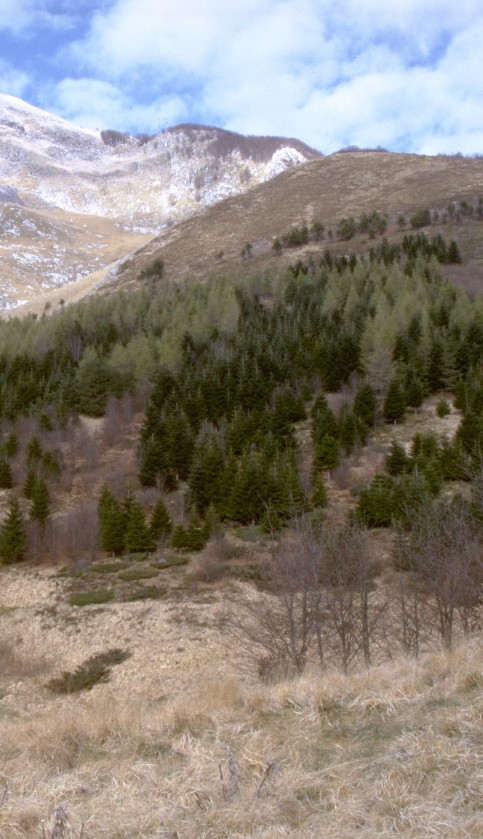Sono formazioni di origine antropica, con la presenza - variabile secondo gli impianti - di abete bianco (Abies alba), abete rosso (Picea excelsa), pino silvestre (Pinus sylvestris) e pino nero (Pinus nigra).